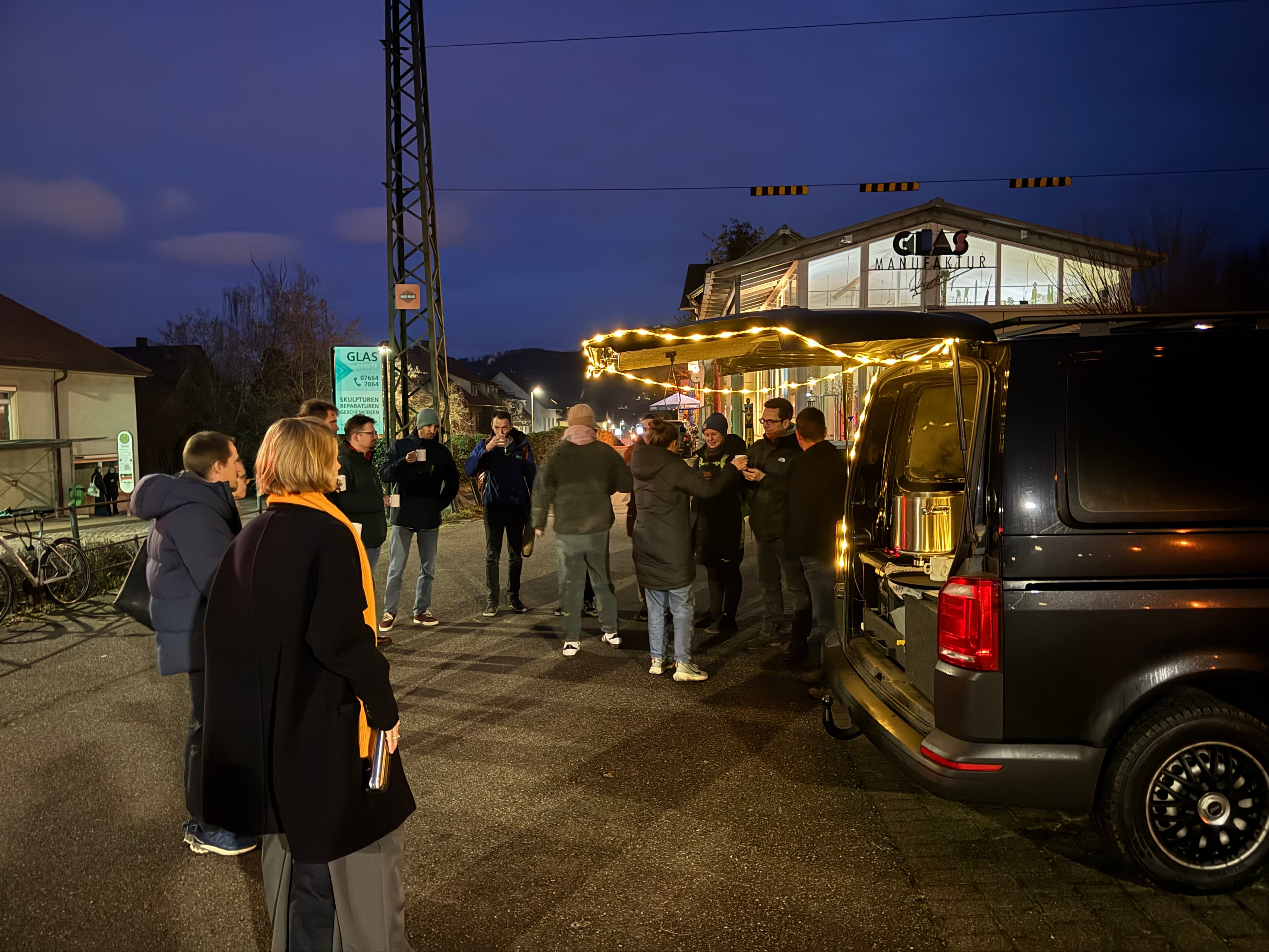 Danach ging es mit Glühwein weiter Richtung Esswerkstatt. Dort haben wir gemeinsam ein Drei-Gänge-Menü gekocht, geschnippelt, gelacht und am Ende zusammen gegessen. Kein grosses Tamtam, sondern genau die Art von Abend, die daran erinnert, warum Zusammenarbeit mehr ist als Termine und To-dos.